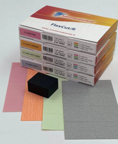 Dischi abrasivi a cosparsione aperta, supporto film extra flessibile, prodotto con un sistema innovativo, ecologico e attento alla salute dell’utilizzatore. Resistono ad acqua e olii, ottima finitura e durata superiore. Rimuovono difetti, buccia d’arancia, rendendo il supporto uniforme e perfettamente planare. Indicato per lavorazioni a secco, sottoforma di disco adesivo da 32mm e foglietto rinforzato adesivo da 29x35mm.
